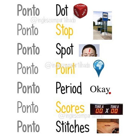 Hey, bonitos! ⠀⠀⠀⠀⠀⠀⠀⠀⠀⠀⠀⠀⠀⠀⠀⠀⠀⠀⠀⠀⠀⠀⠀ ▶️ Olha o inglês provando mais uma vez que ele é LINDO! É muito importante que você saiba quando usar cada uma dessas várias palavras que querem dizer #ponto em português.